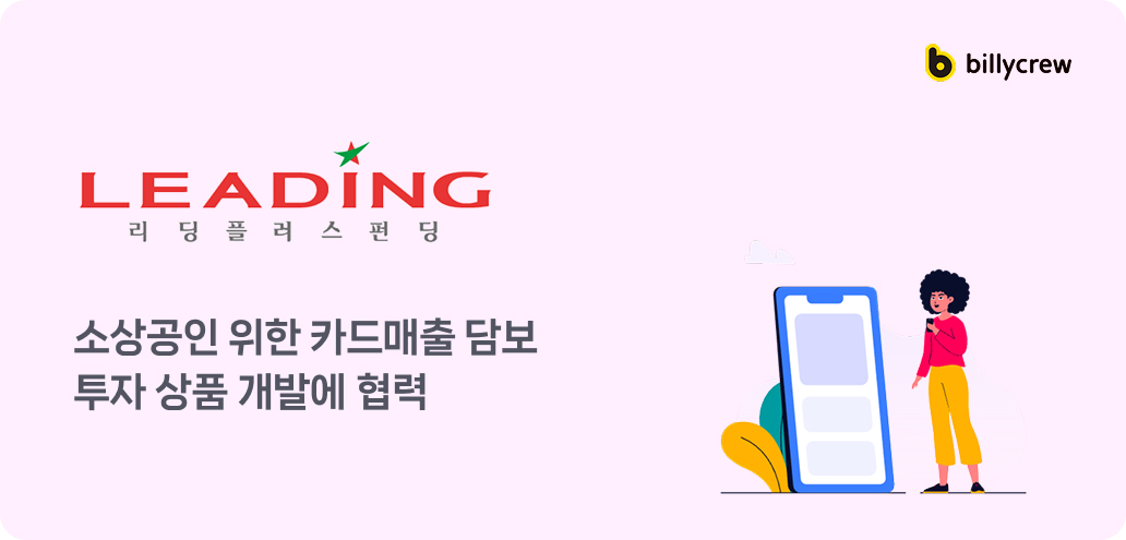 빌리크루, 리딩플러스와 소상공인 카드매출 담보 투자 상품 함께 만들기로 - 소상공인 지원 위한 상품 출시에 박차